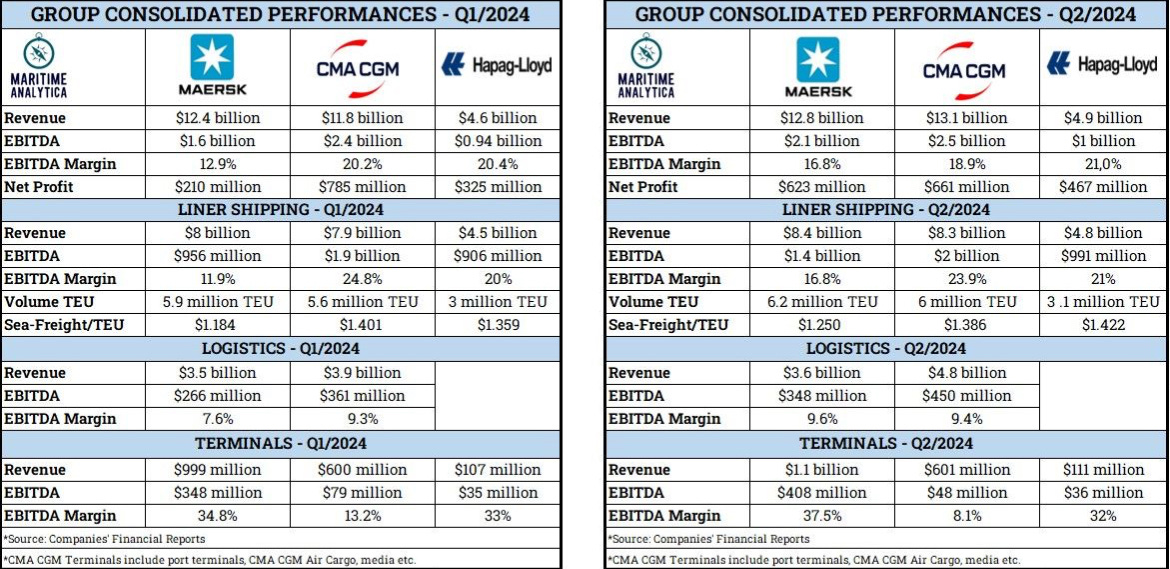 📊Maersk Vs. CMA-CGM Vs. Hapag Lloyd - Q2’24