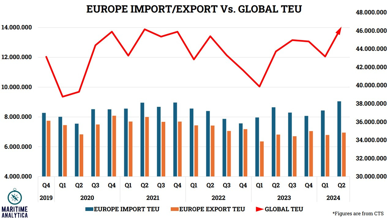 🌍Global TEU Vs. Europe (Import-Export) - Q2/2024🔥