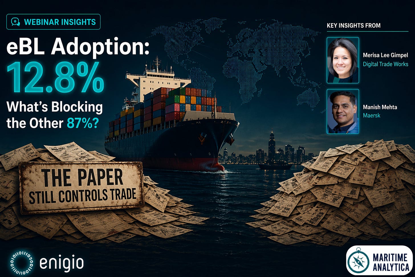 We followed a recent webinar by Enigio, featuring insights from Merisa Lee Gimpel (Digital Trade Works) and Manish Mehta (Maersk).