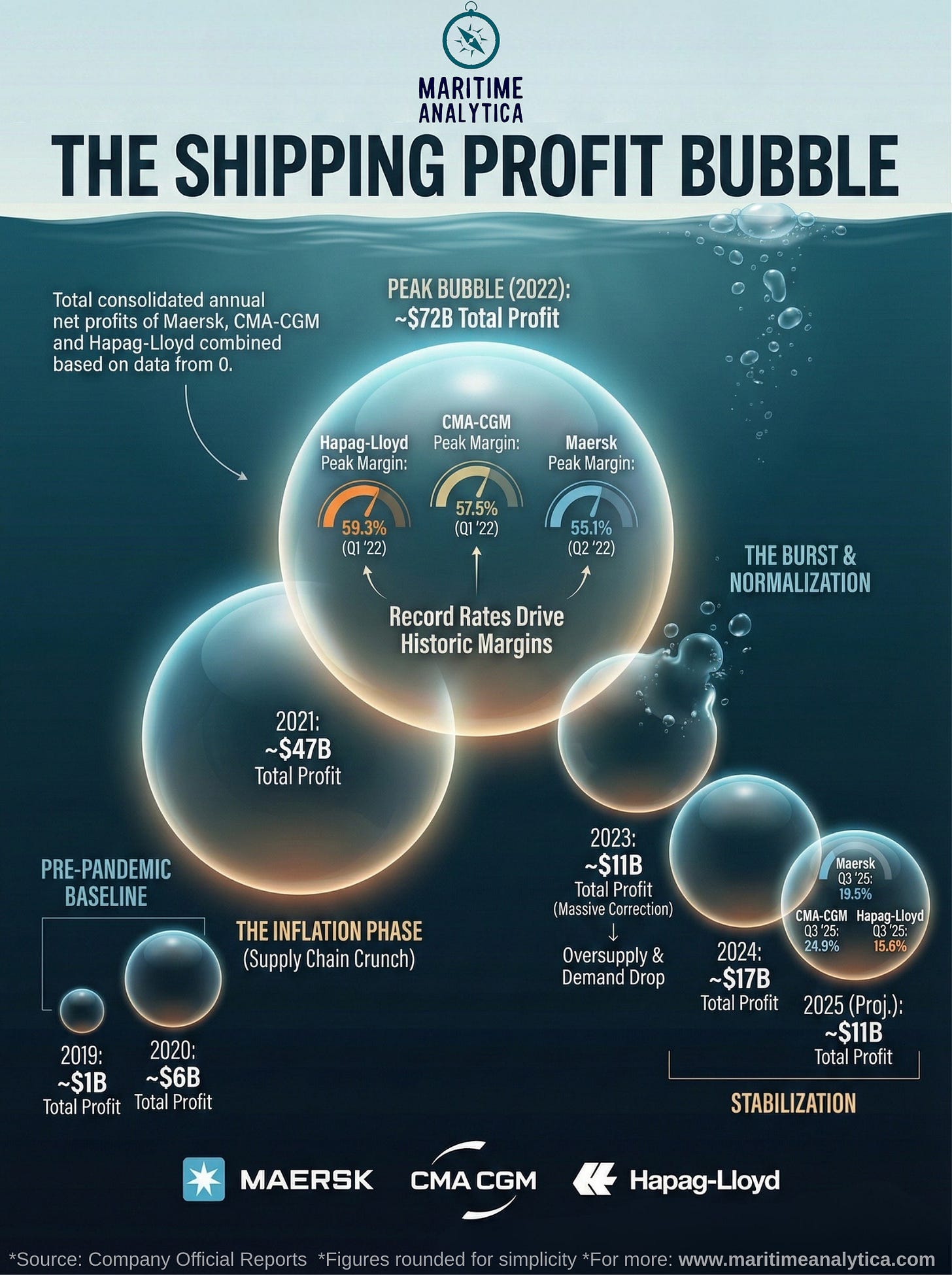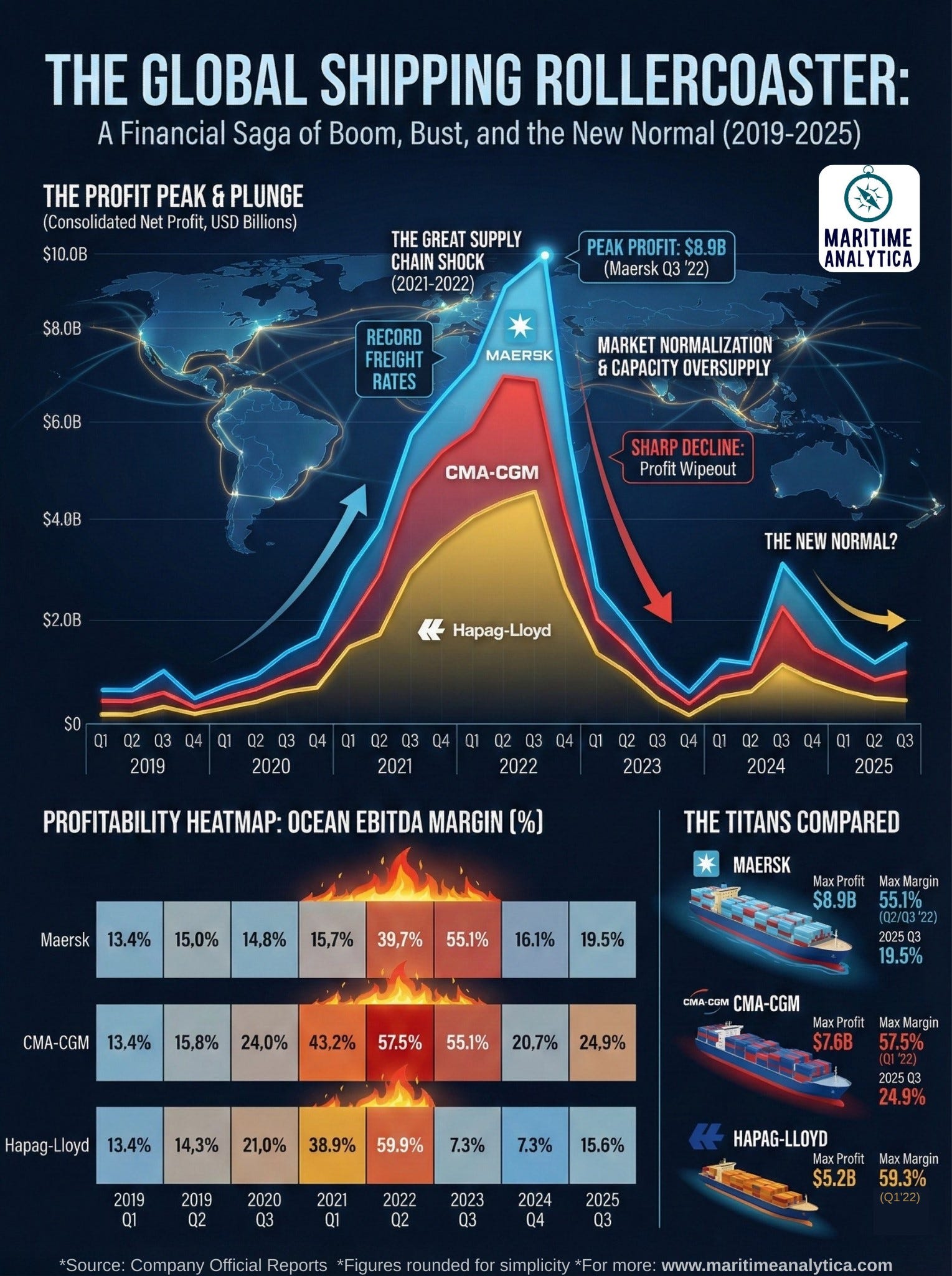 Shipping profits proved highly cyclical, not structurally permanent.