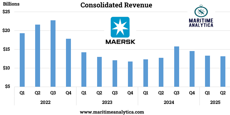 🏅Maritime Analytica Insight: Maersk’s Q2 revenue hit $13.1B (+2.8% YoY) with EBITDA at $2.3B, proving strong resilience in a volatile market.