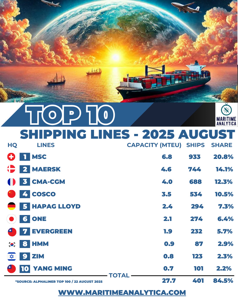 🏅Maritime Analytica: “Scale drives dominance, but MSC’s aggressive fleet expansion signals looming overcapacity. Expect freight volatility, intensified alliances, and contract battles shaping the container shipping landscape through 2026.”
