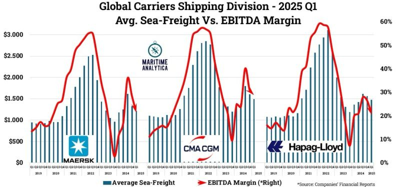 🌎Top Carriers Sea-Freight Vs. EBITDA - Q1/2025🔥