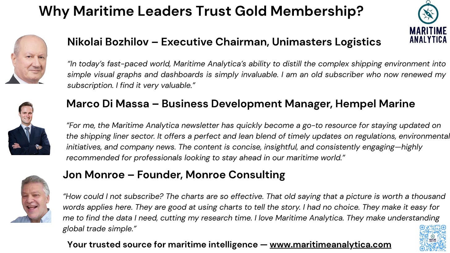 Today, we have grown to +110,000 followers on LinkedIn, +20,000 readers on Substack, and thousands of paid premium members from 160 countries โ including C-level executives from carriers, ports, forwarders, logistics firms and other shipping related companies worldwide.