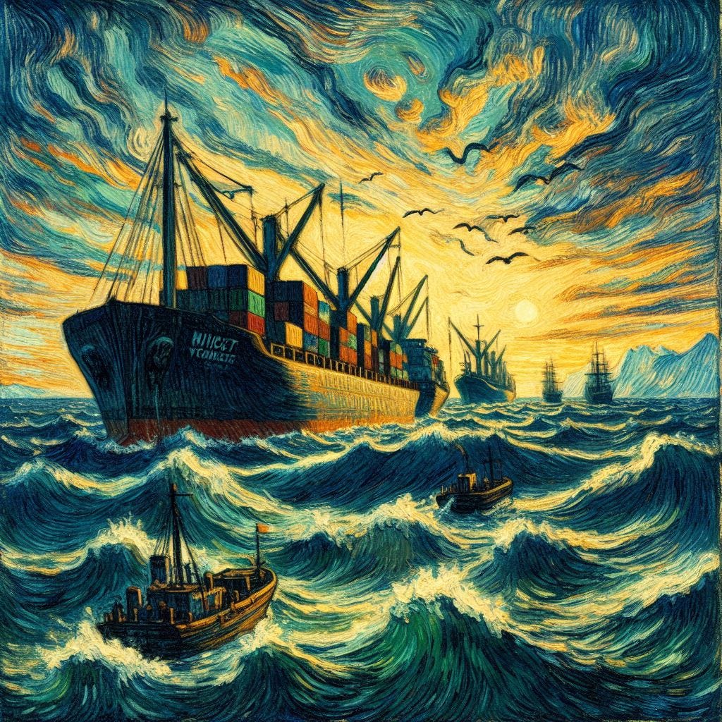 Explore captivating visuals expertly crafted by AI, drawing inspiration from the enduring legacies of celebrated painters. 🚢🎨