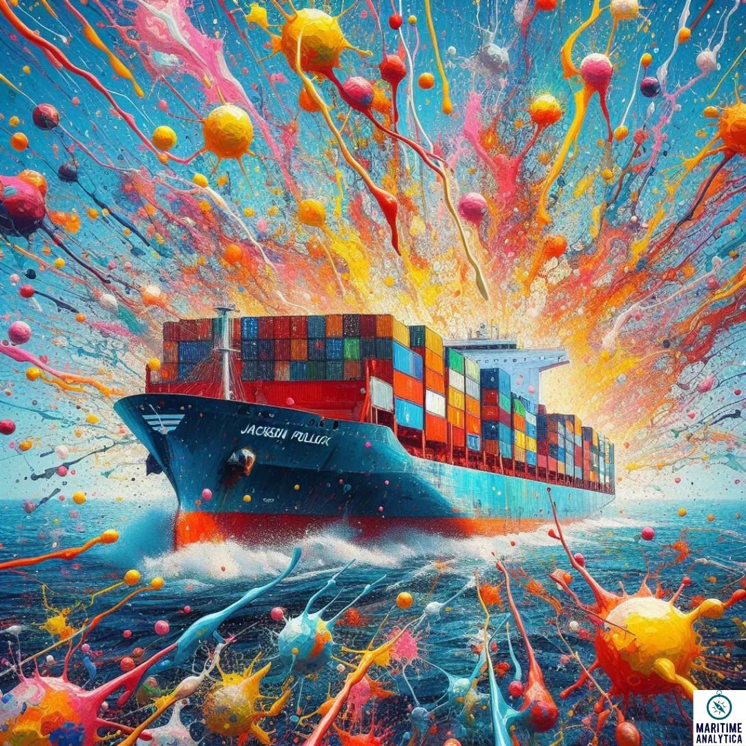 💡Interesting Fact: Jackson Pollock's chaotic splatters on canvas find resonance with the unpredictable nature of the sea. His unique seascape splatter captures the raw energy and beauty of container shipping, mirroring the dance of waves and ships in the open ocean.