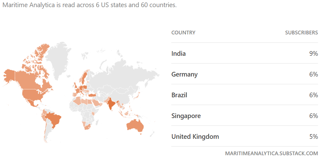 I trust you're enjoying the maritime insights we deliver through our weekly newsletter. It's truly remarkable that, with your support, we've connected with maritime enthusiasts in 60 countries within just 6 weeks. This rapid growth has exceeded my expectations, and I'm sincerely thankful.