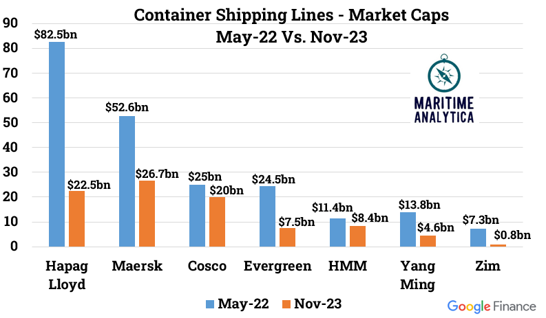 MSC (Mediterranean Shipping Company) sees a significant increase, now owning 52% of its fleet, up from 42% in 2022Q3.